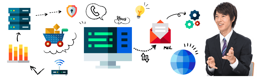 スタンダードなサイト構築やシステム開発から、EC、アプリ、IoT、AI、動画配信、IP電話まで幅広い分野で、様々なプラットフォームに統合的に対応可能です。 その他、多言語対応、インフラ構築、クラウドサーバ対応、セキュリティ対策もお任せ下さい。